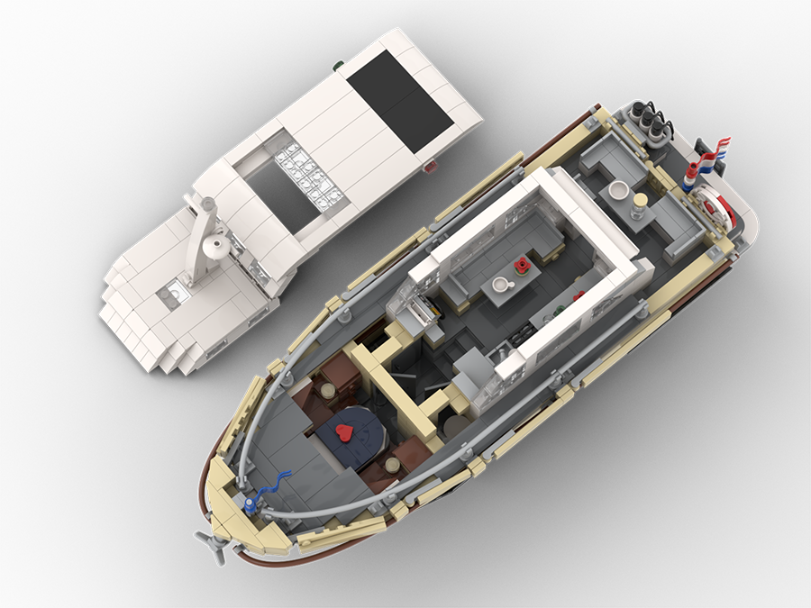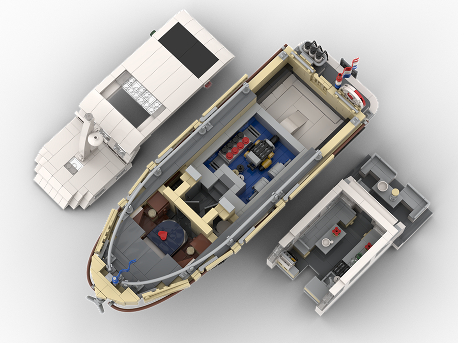 * HINWEIS: Bei den verwendeten Klemmbausteinen (oder auch Noppensteinen) für den Modellbau von Motoryachten und Hausbooten handelt es sich NICHT um Steine der Marke LEGO®! Die Teile stammen zum größten Teil aus der Produktion anderer Hersteller. Eine Ausnahme bilden hier lediglich bedruckte Teile oder Figuren, die bei anderen Lieferanten nicht erhältlich sind. Aber alle verwendeten Klemmbausteine sind kompatibel mit den Steinen von LEGO® und können problemlos kombiniert werden.