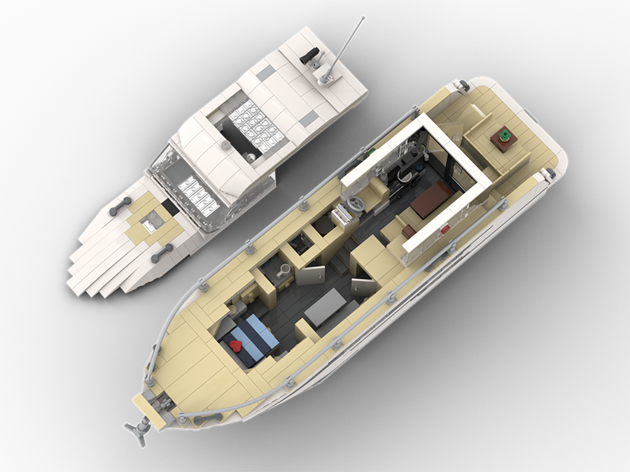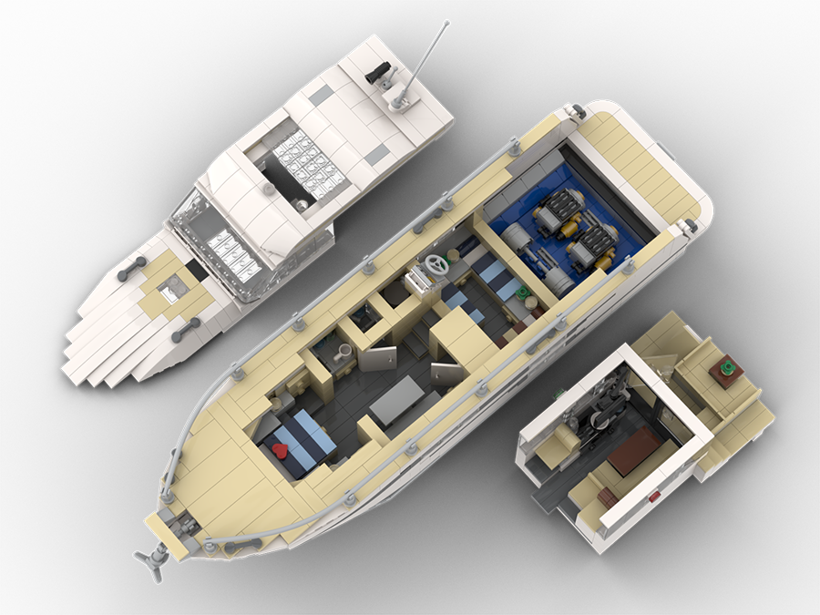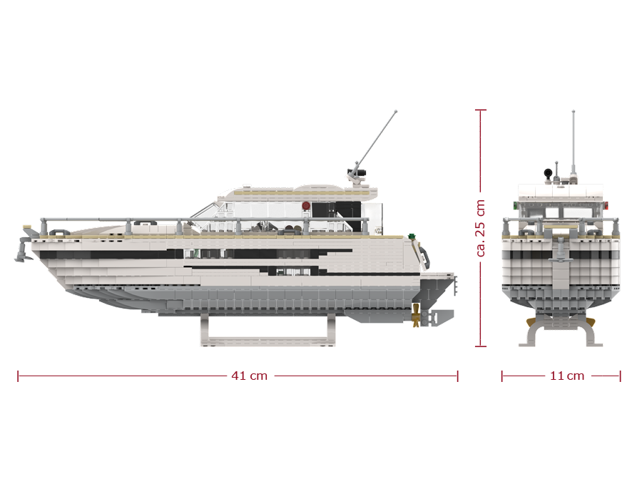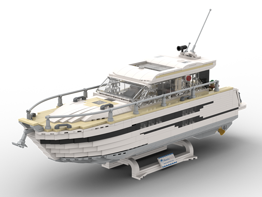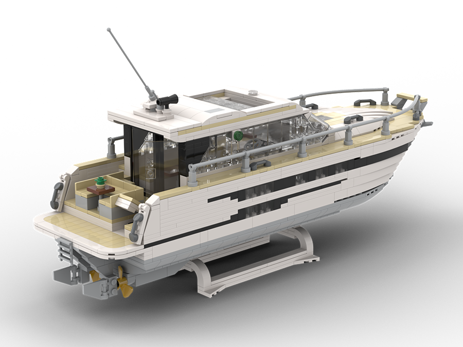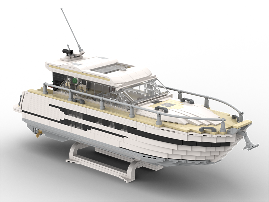 Dieses Modell aus Klemmbausteinen ist dem Entwurf einer BAVARIA SR38 nachempfunden – einer ganz besonderen Motoryacht mit der perfekten Balance von zeitloser Eleganz, moderner Linienführung und durchdachtem Design. Diese Yacht überzeugt mit sportlicher Eleganz und zurückhaltendem Understatement – ein Modell, welches in keiner Sammlung eines Liebhabers moderner Motoryachten fehlen sollte.
