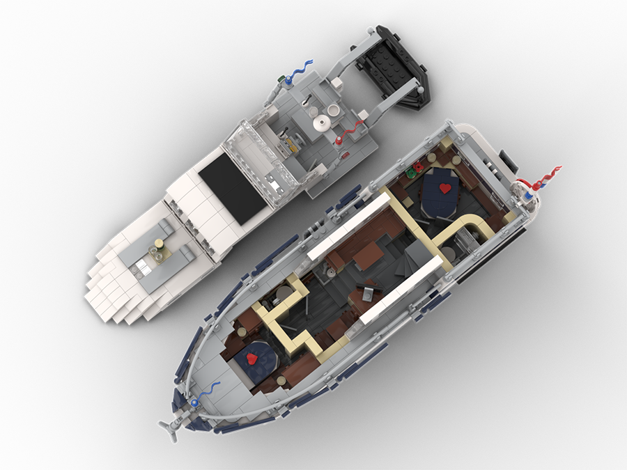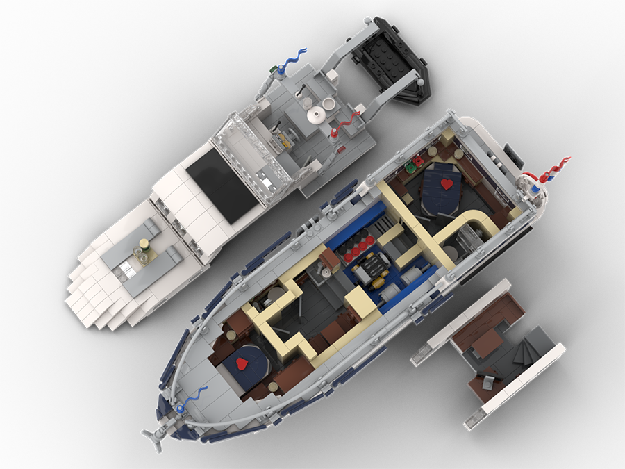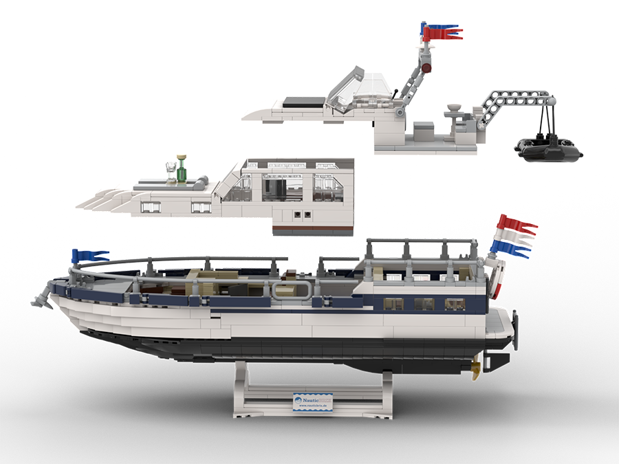 * HINWEIS: Bei den verwendeten Klemmbausteinen (oder auch Noppensteinen) für den Modellbau von Motoryachten und Hausbooten handelt es sich NICHT um Steine der Marke LEGO®! Die Teile stammen zum größten Teil aus der Produktion anderer Hersteller. Eine Ausnahme bilden hier lediglich bedruckte Teile oder Figuren, die bei anderen Lieferanten nicht erhältlich sind. Aber alle verwendeten Klemmbausteine sind kompatibel mit den Steinen von LEGO® und können problemlos kombiniert werden.