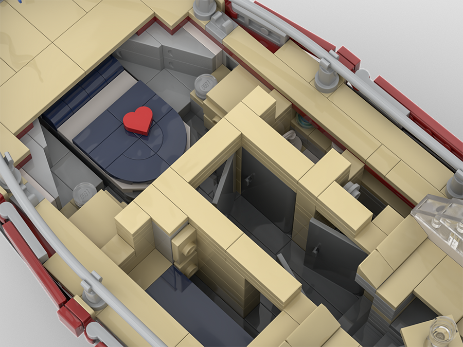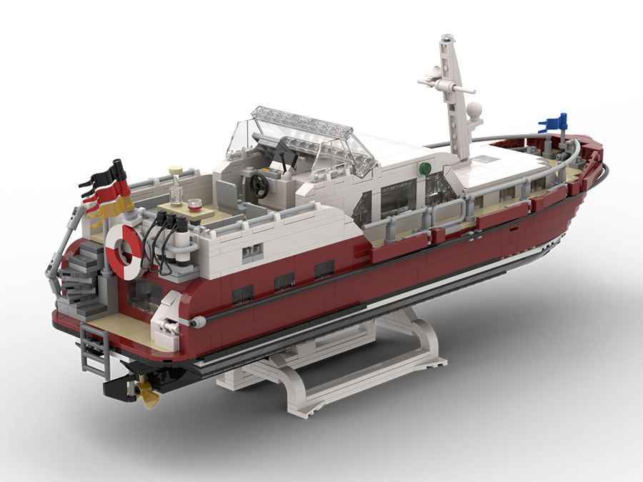 Nautic 41 G-DarkRed, Modell einer Motoryacht aus Lego, Ansicht Backbord vorne auf Kompassrose