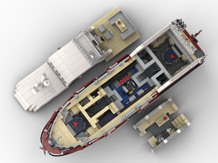 * HINWEIS: Bei den verwendeten Klemmbausteinen (oder auch Noppensteinen) für den Modellbau von Motoryachten und Hausbooten handelt es sich NICHT um Steine der Marke LEGO®! Die Teile stammen zum größten Teil aus der Produktion anderer Hersteller. Eine Ausnahme bilden hier lediglich bedruckte Teile oder Figuren, die bei anderen Lieferanten nicht erhältlich sind. Aber alle verwendeten Klemmbausteine sind kompatibel mit den Steinen von LEGO® und können problemlos kombiniert werden.