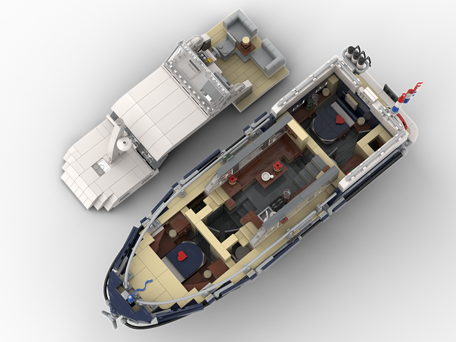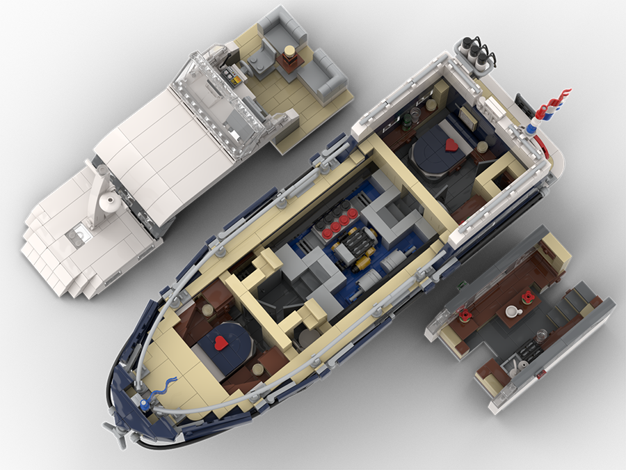 * HINWEIS: Bei den verwendeten Klemmbausteinen (oder auch Noppensteinen) für den Modellbau von Motoryachten und Hausbooten handelt es sich NICHT um Steine der Marke LEGO®! Die Teile stammen zum größten Teil aus der Produktion anderer Hersteller. Eine Ausnahme bilden hier lediglich bedruckte Teile oder Figuren, die bei anderen Lieferanten nicht erhältlich sind. Aber alle verwendeten Klemmbausteine sind kompatibel mit den Steinen von LEGO® und können problemlos kombiniert werden.